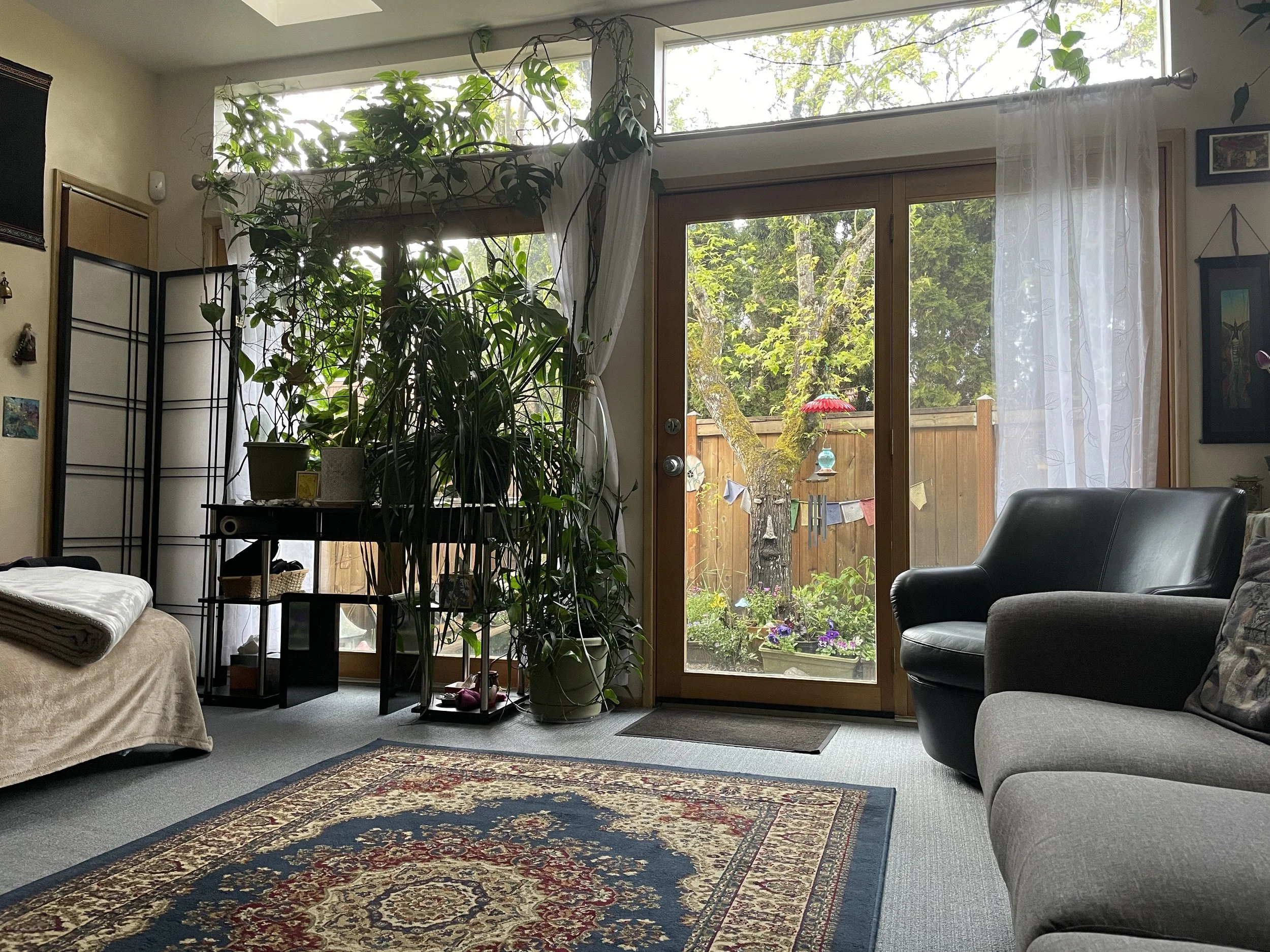 “At EPIC Healing Eugene, you can have your session in our Garden Room with its attached private courtyard, or in our cozy Hummingbird Room with its large picture window, healing stones, plants, and inviting artwork. We also offer sessions at our partnered licensed Service Center locations, which are also pleasant and welcoming.