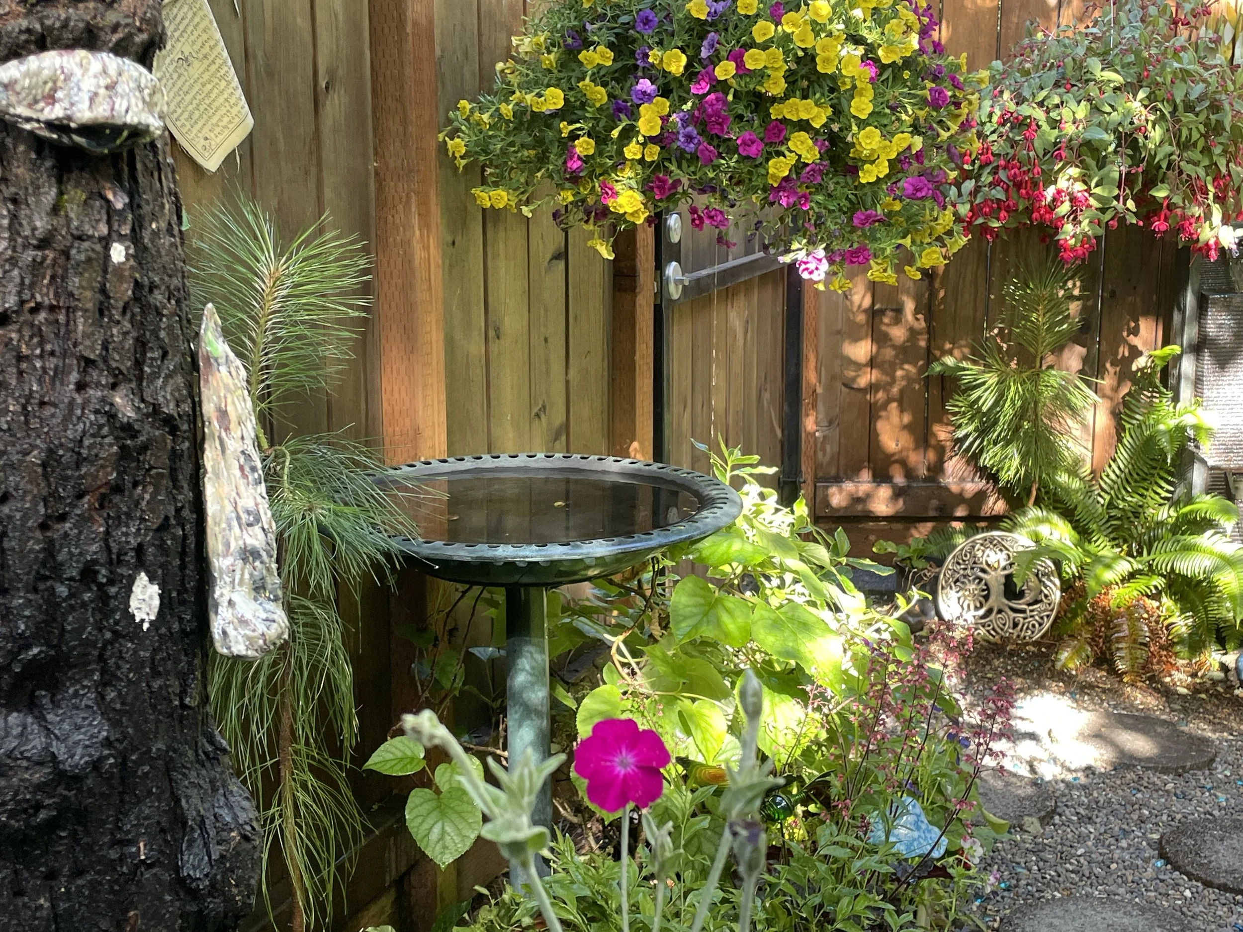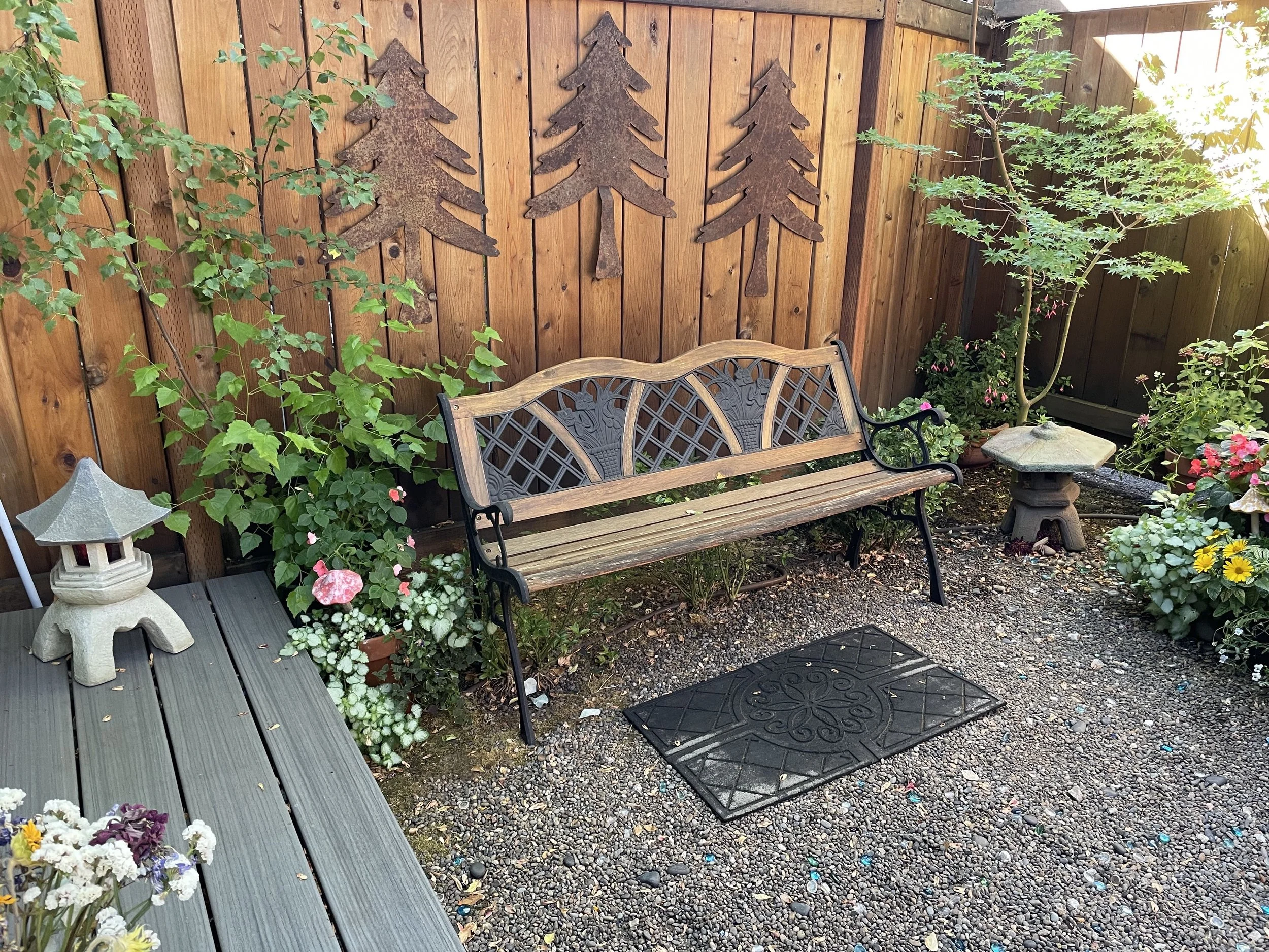Our EPIC Healing Eugene private courtyard, an extension of the Garden Room is inviting with visiting birds, and entertaining squirrels. The chimes and peaceful fountain add the elements of wind and water.
