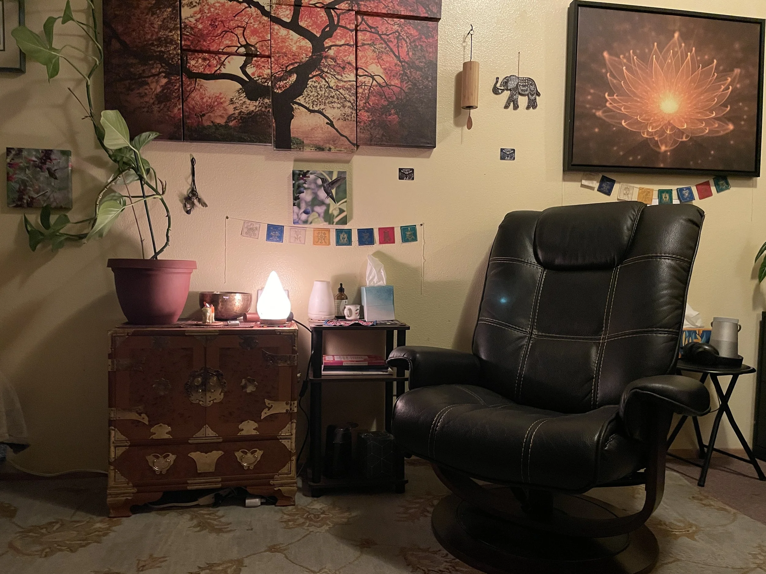 Cozy and safe, clients describe our Hummingbird Room as having its own magic and special energy.