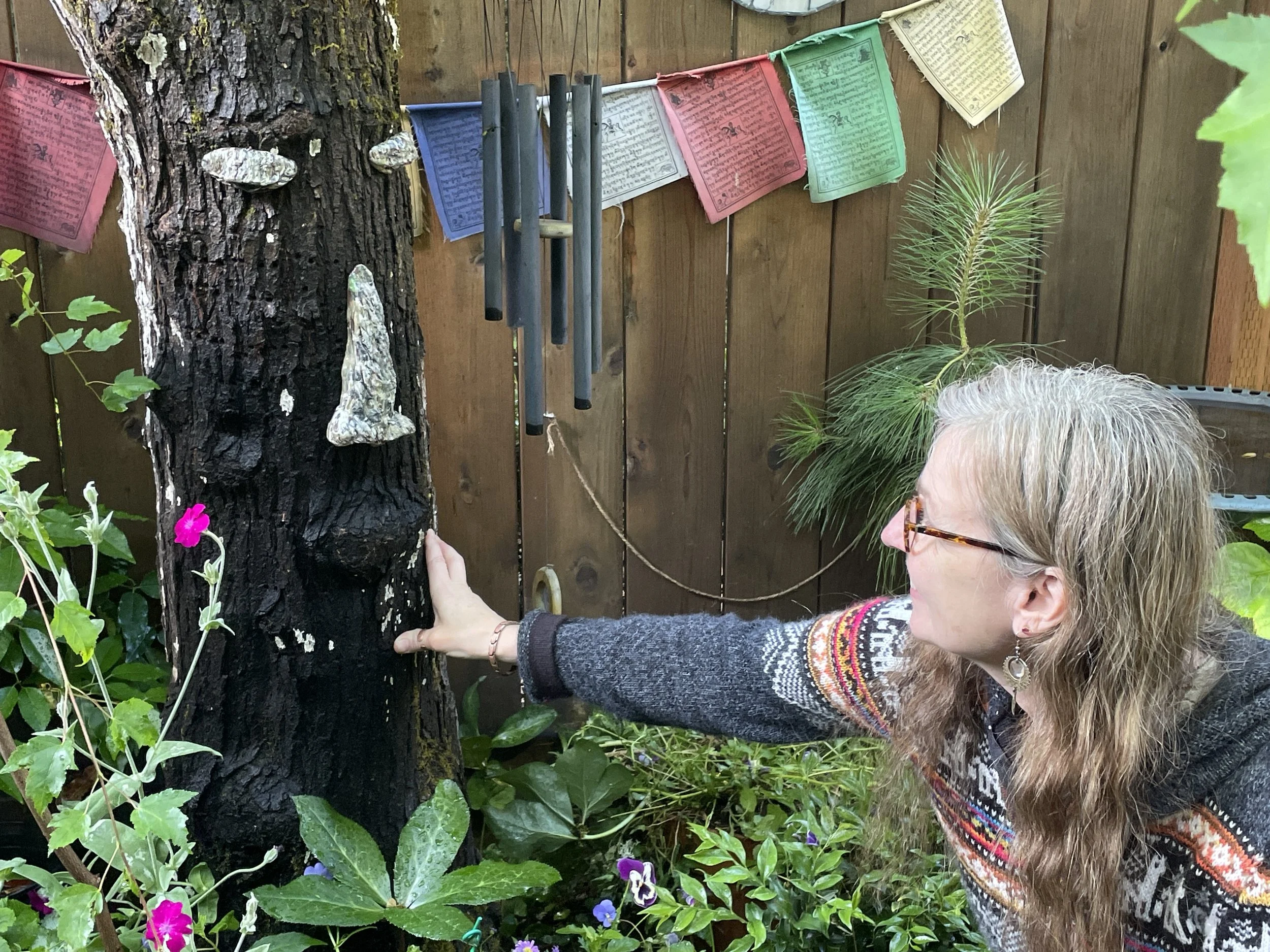 “Druid” - EPIC’s courtyard tree offers shade, leaves, falling petals, and seasonal seedpods. Druid attracts the birds and squirrels, and is ready to lend a ear or hold presence for guests visiting our private courtyard.