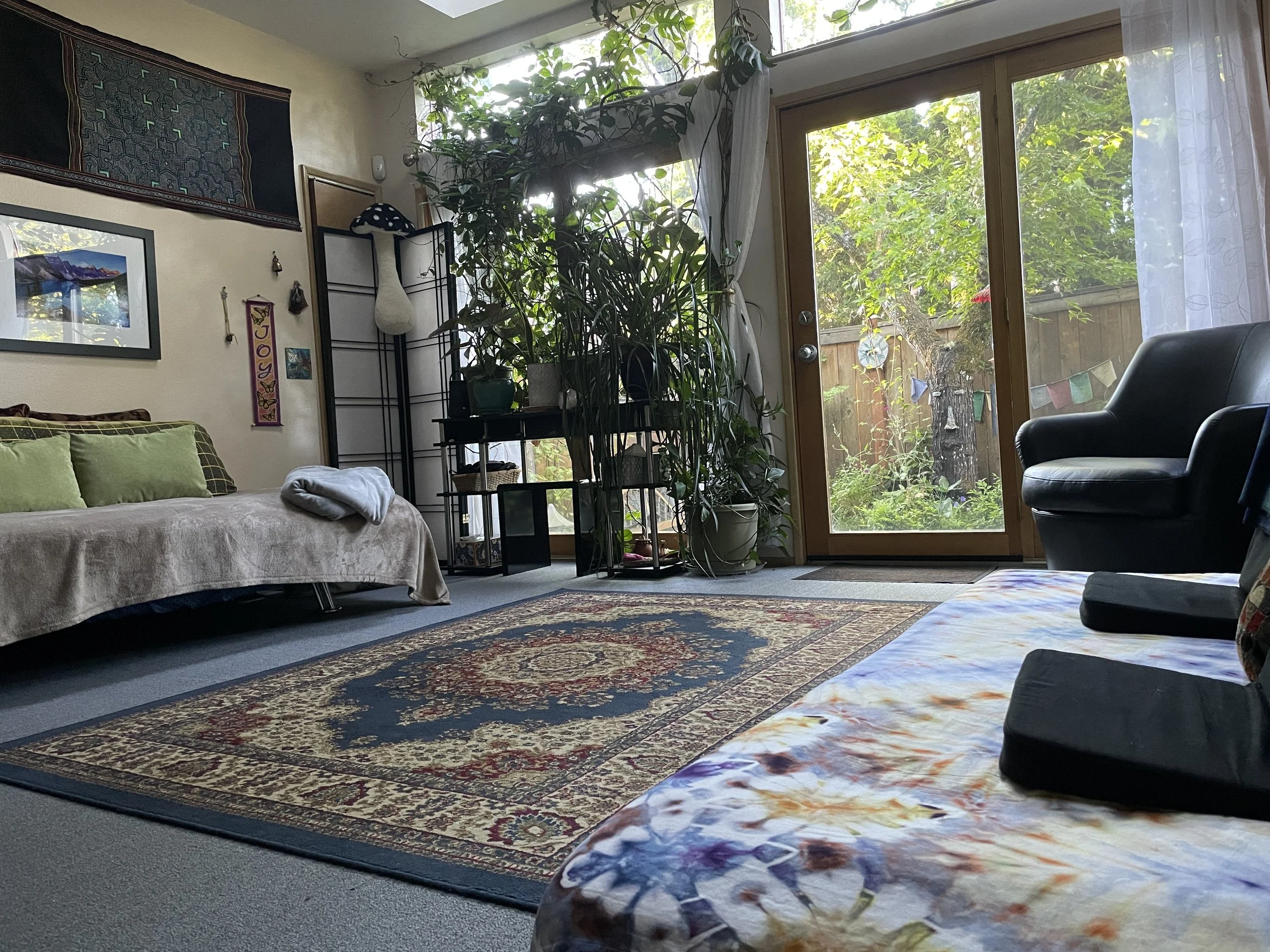 EPIC’s Garden Room, view of private courtyard space. Clients love the courtyard, staff do too! 💜 We also have comfortable mats for those who like being on the floor.