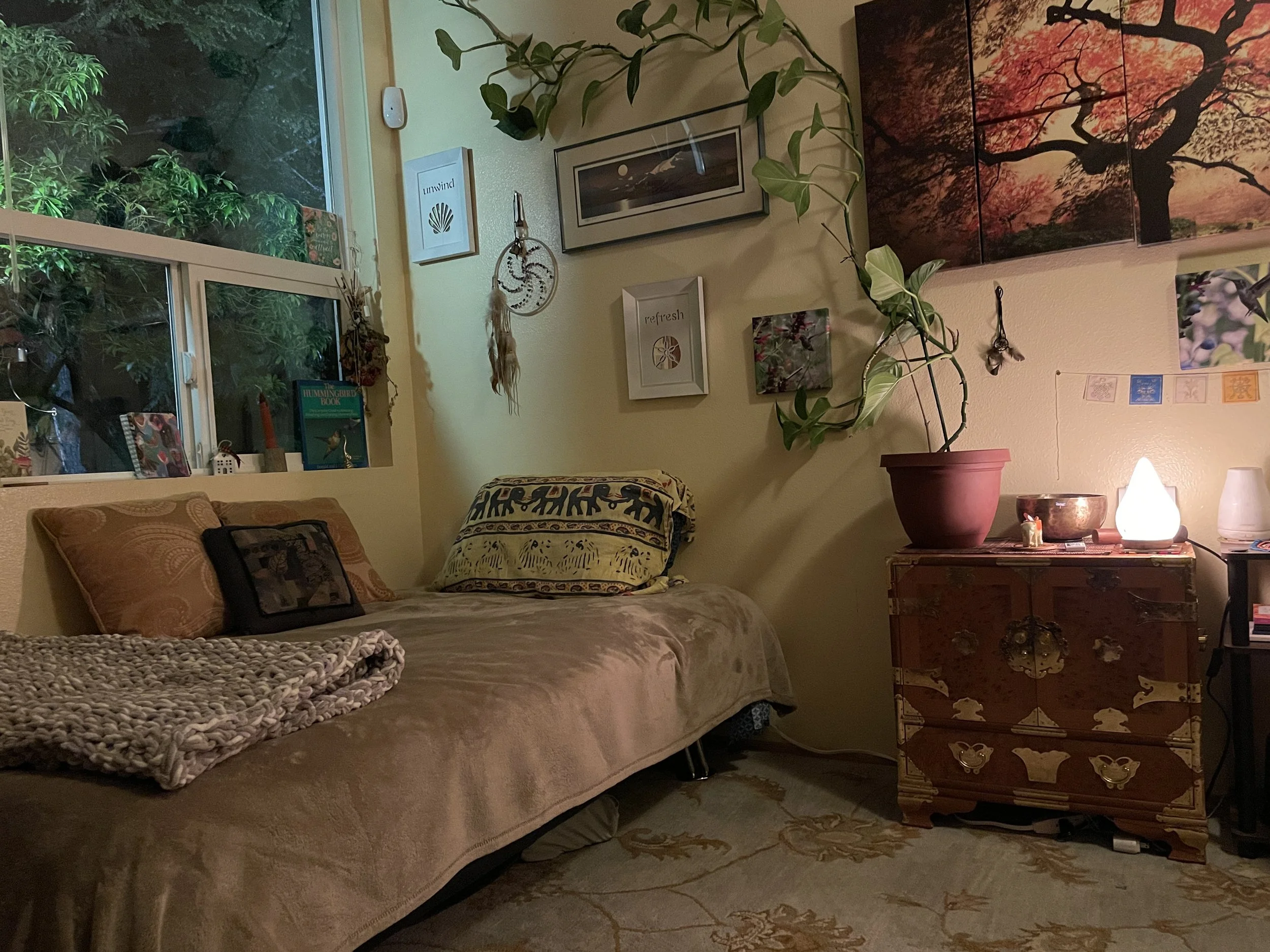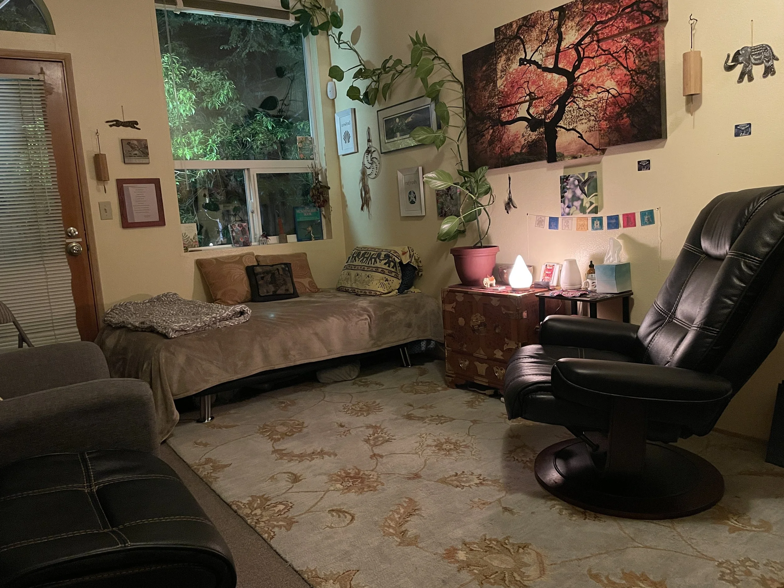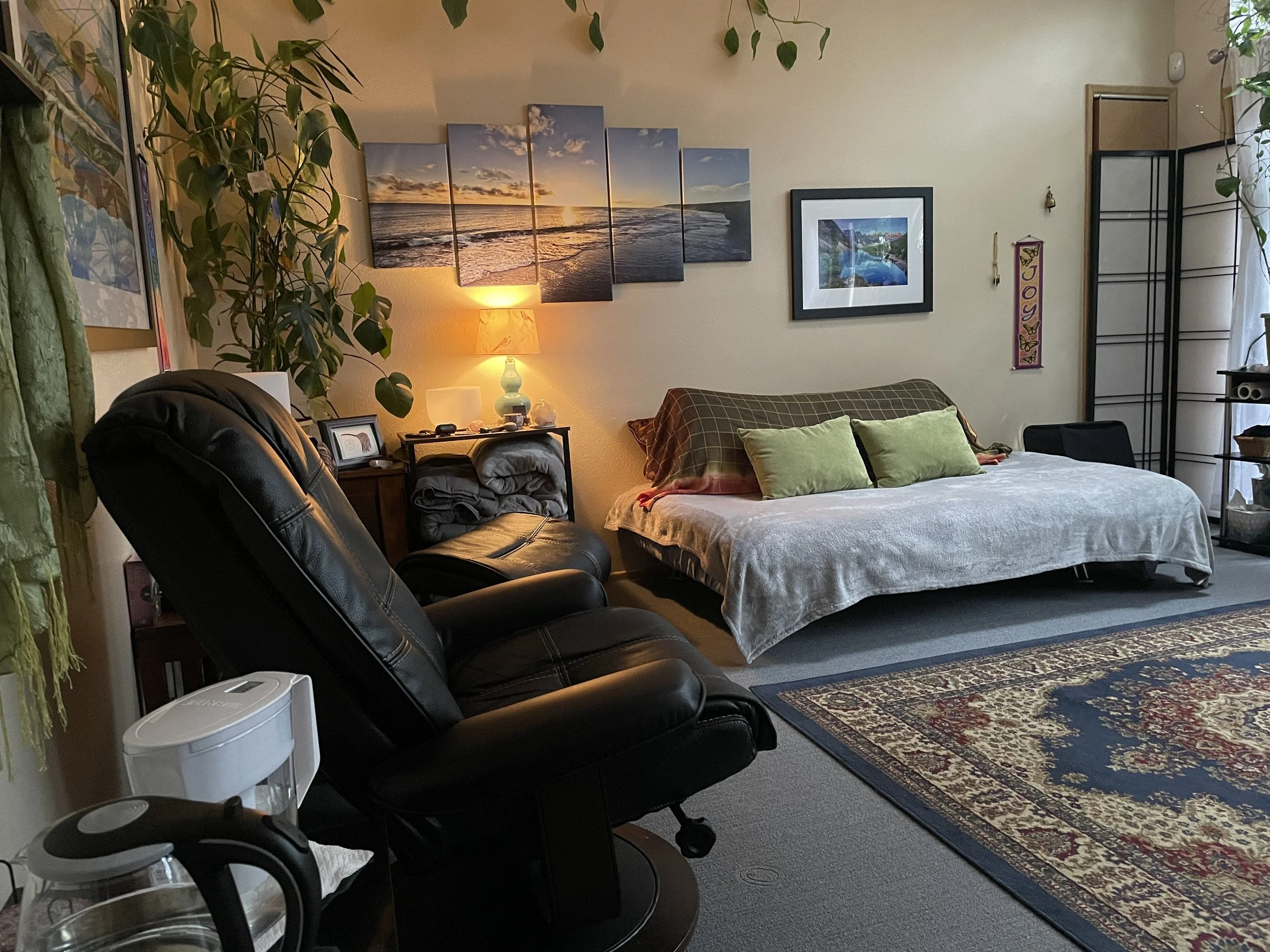 The Hummingbird Room at EPIC Healing Eugene. When we use both of our rooms, we can accommodate groups of five.
