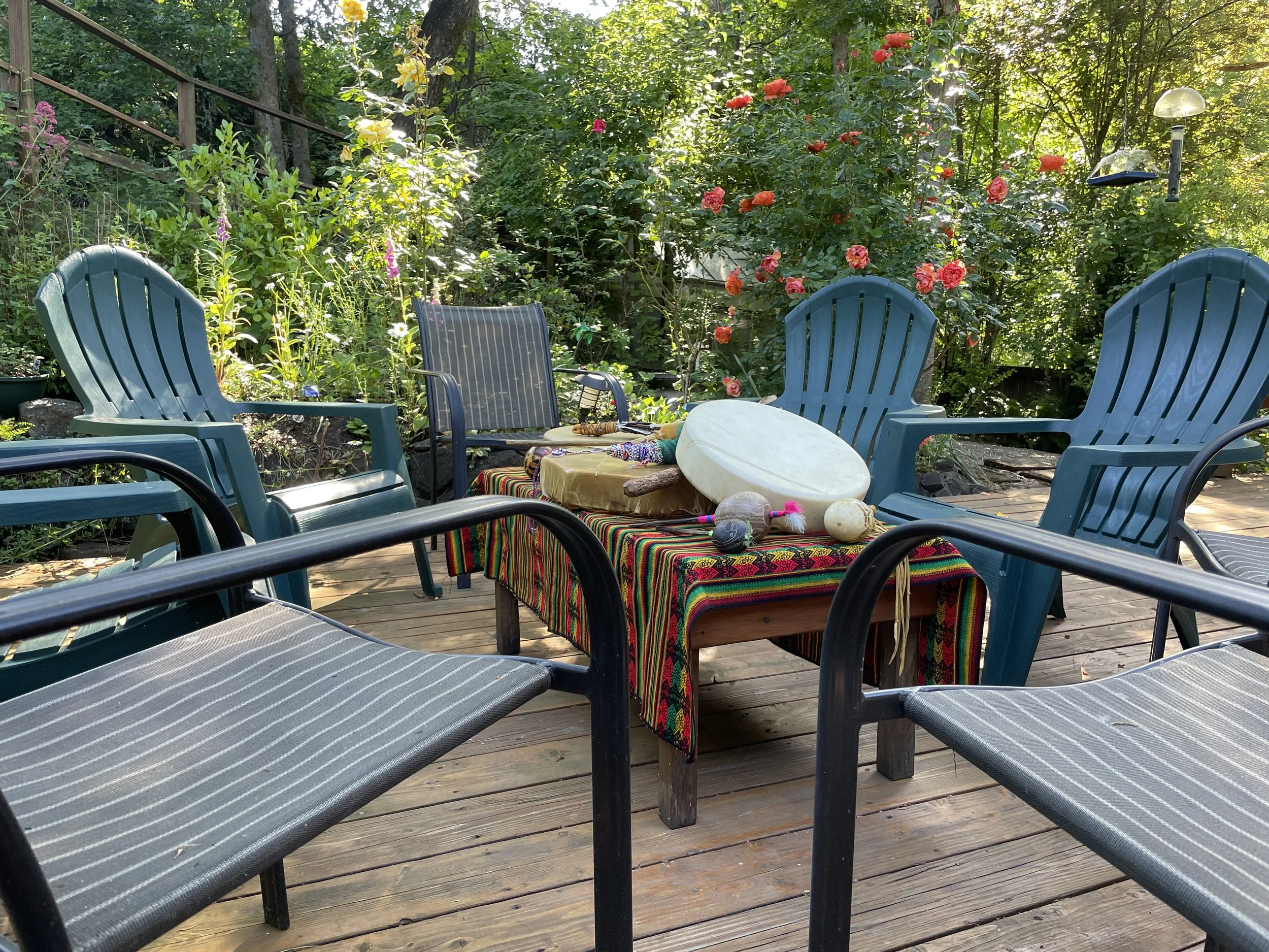 Shamanic drumming Journey of “Meeting Your Future Self” at the “Healers of the Heart Retreat”. (Cathy drumming at the Dragonfly Retreat House)
