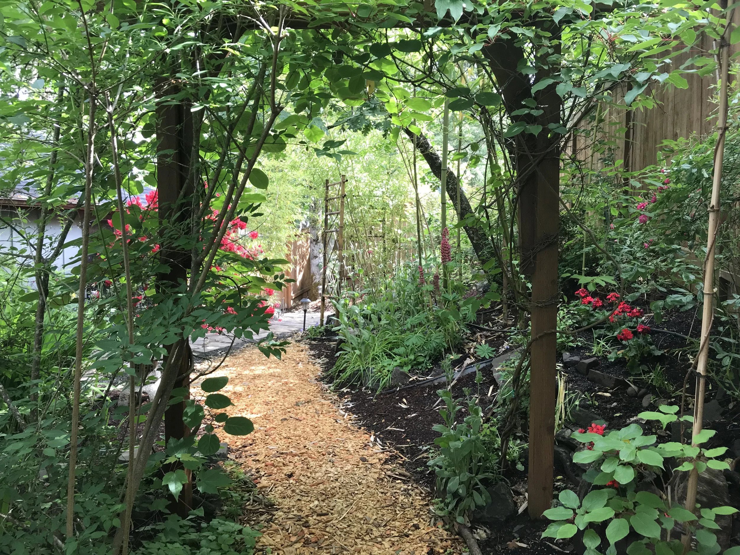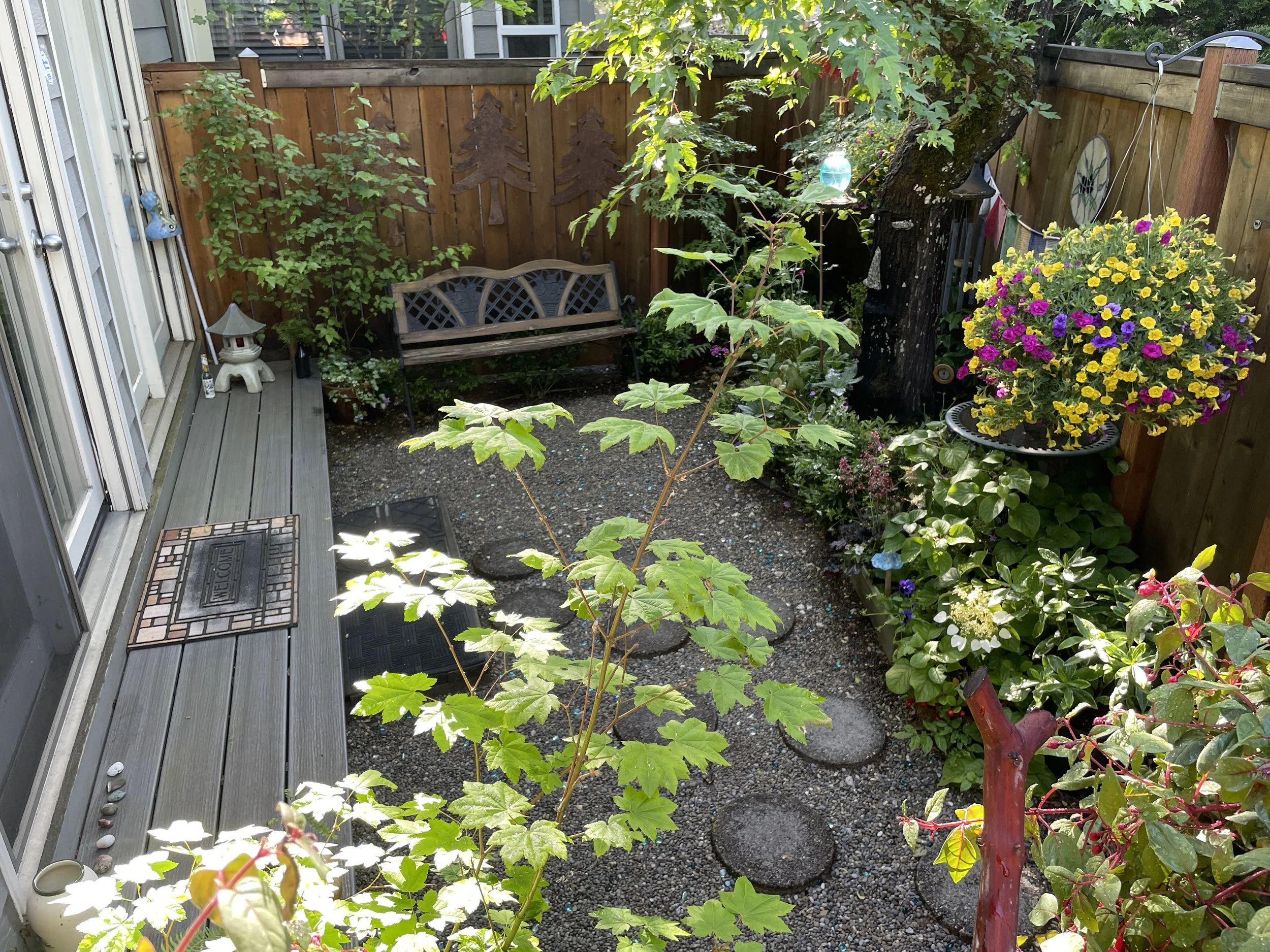 Hummingbird View of EPIC’s Private Courtyard, which is attached to our Garden Room. We also have a sturdy cot-hammock that gets good use.
