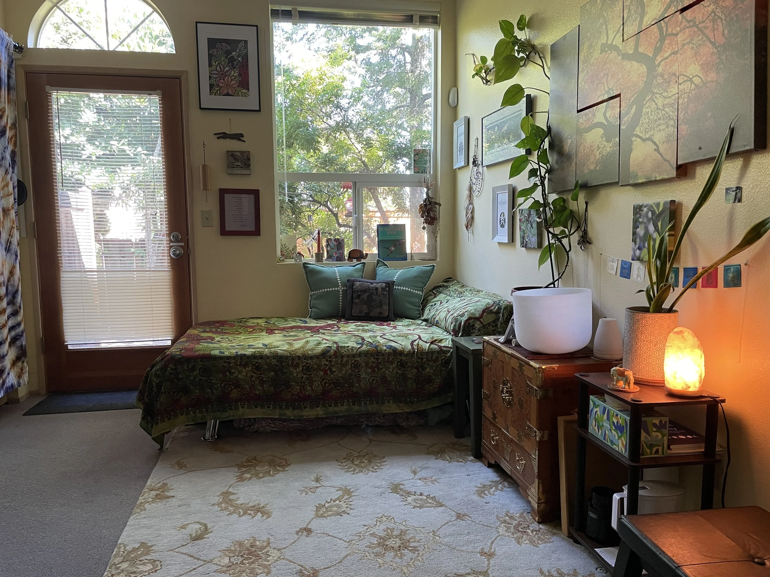 EPIC Healing offers one of the few licensed, private outdoor spaces in Oregon, connected to our popular, plant-filled Garden Room. The Garden Room also includes a private bathroom. It’s a special, peaceful place for a guided psychedelic experience, as our clients and facilitators confirm. Check out our Healing Spaces on EPIC’s website.