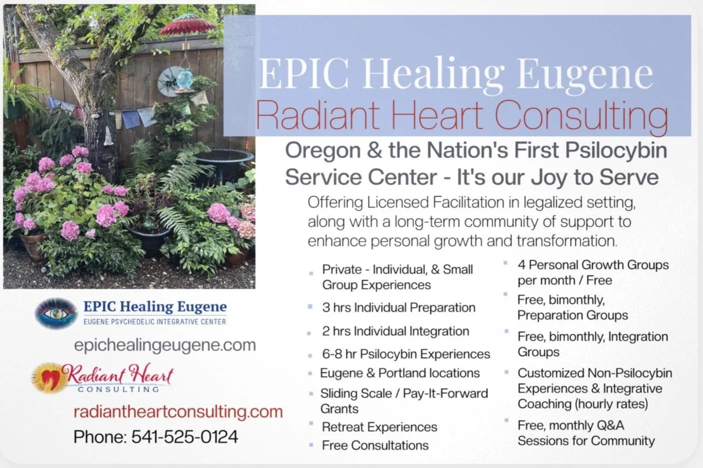 Thank You: A big thank you goes out to our grower (manufacturer), our facilitators, current and past clients, and others that have contributed to our PIF Funds. These contributions are added to the 5% in revenue EPIC Healing and Radiant Heart Consulting contribute each month. We are happy to report we have now donated over $100,000 to clients who have needed varying amounts of financial assistance to have services with us. Thank you. (12/2025)